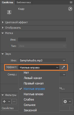В Animate можно определить для звука начальную точку или управлять его громкостью по мере воспроизведения. Можно также изменить точку, в которой начинается и заканчивается воспроизведение звука. Это может помочь в уменьшении звукового файла путем удаления неиспользуемых разделов.