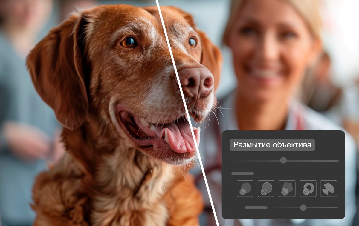 Добавление эффекта размытия с помощью функции «Размытие объектива»