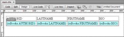 Таблица и местозаполнители для динамического содержимого в наборе записей Таблица и местозаполнители для динамического содержимого в наборе записей В данном примере набор записей содержит четыре столбца: AUTHORID, FIRSTNAME, LASTNAME и BIO. Строка заголовка таблицы заполняется названием каждого столбца. Заголовки можно изменить с помощью любого описательного текста или заменять их на соответствующие изображения.