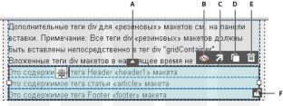 При выборе вставляемого элемента отображаются параметры для скрытия, копирования, блокировки или удаления элемента Div. Для элементов Div, наложенных друг на друга, отображается параметр, позволяющий поменять элементы Div местами.