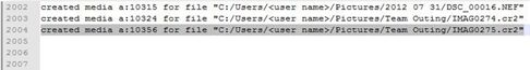 Прокрутите текст вниз до конца. Последняя строка в журнале содержит имя файла и путь к нему. Этот файл и является причиной сбоя при преобразовании каталога. Например, как показано на скриншоте ниже, файлом, вызывающим сбой при преобразовании каталога, является IMAG0275.cr2.