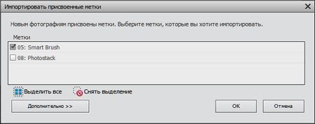 Также можно импортировать метки ключевых слов, добавленные к медиаобъектам. Выделите метки, которые следует импортировать, и нажмите кнопку ОК.