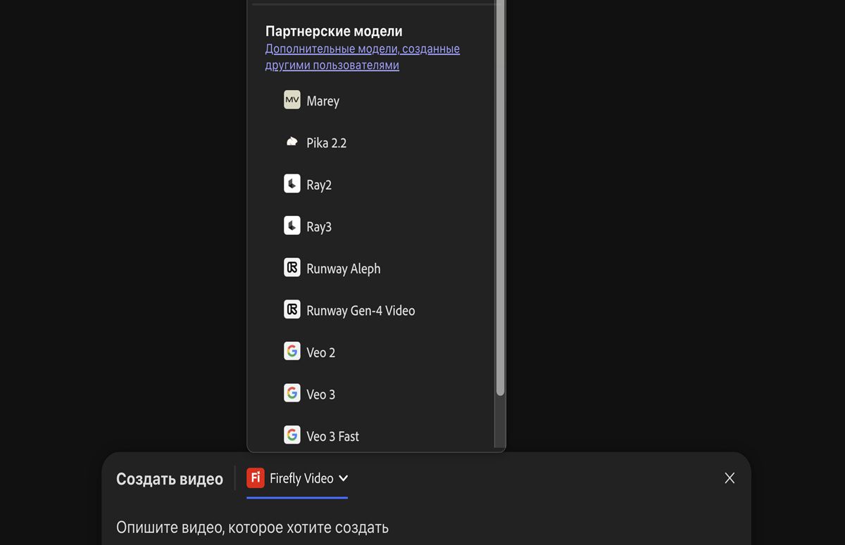 Создавайте изображения и видео, используя модели Adobe и партнерские модели, для поиска творческих идей и улучшения результатов.