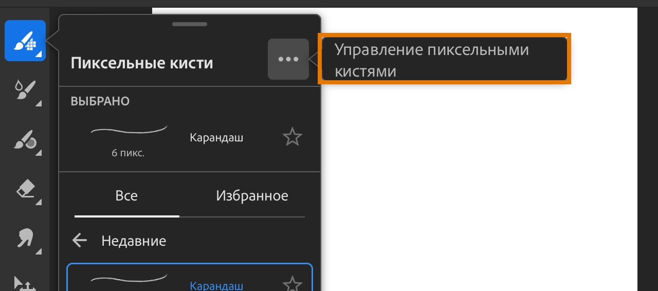 Чтобы выбрать и настроить пиксельную кисть, сделайте следующее: