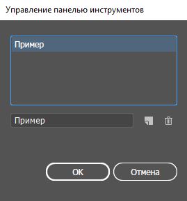 - Переименовать: выберите панель инструментов в списке и введите в текстовое поле новое название.
