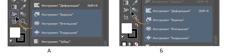 Удерживая нажатой клавишу Alt (Windows) или Option (macOS), нажмите инструмент, чтобы просмотреть и выбрать скрытые инструменты.