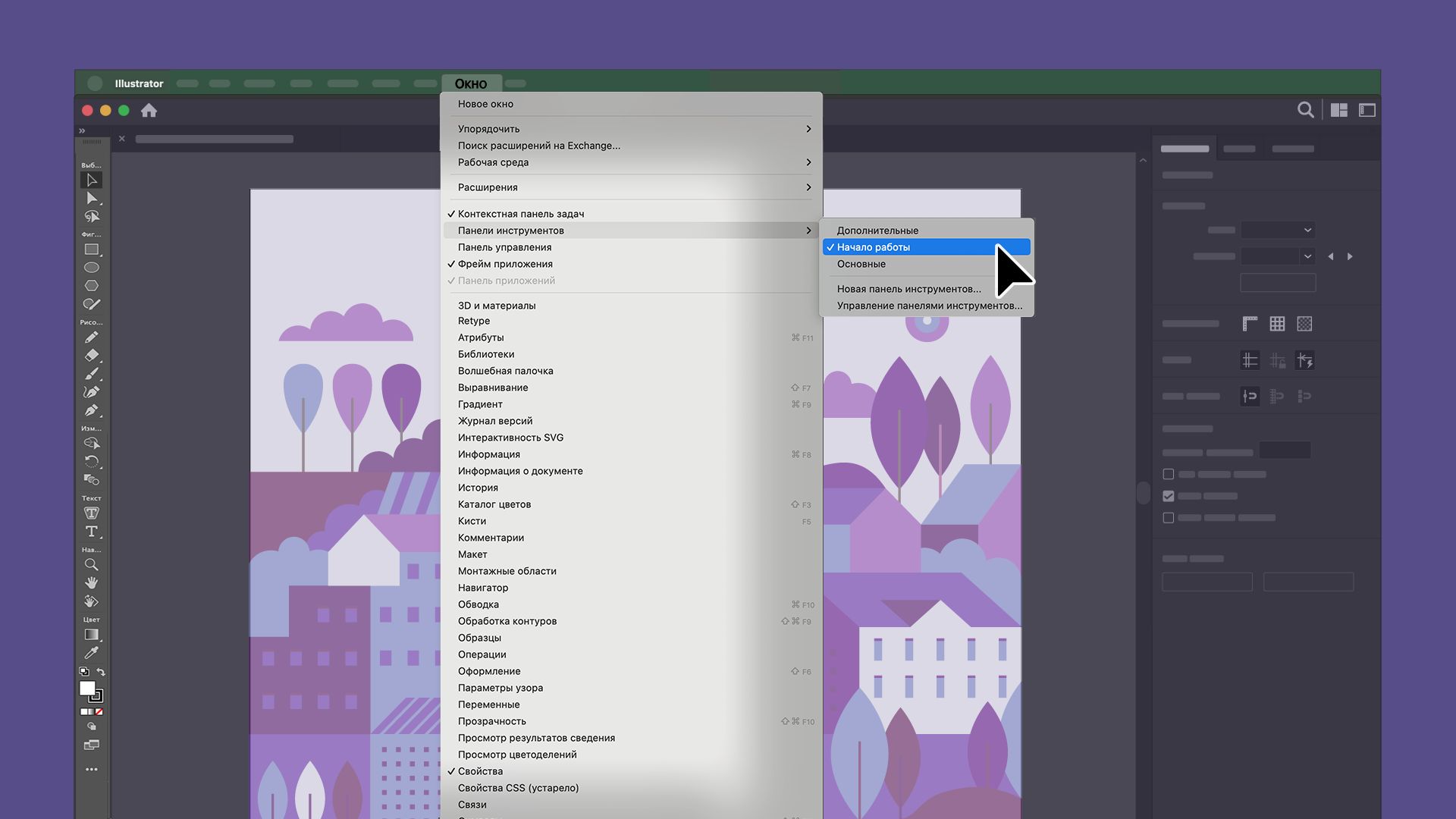 На новой панели инструментов Начало работы представлены основные инструменты, которые упорядочены в виде легкодоступных групп и которые помогут начать работу с приложением. Кроме того, можно переключиться на оптимизированную рабочую среду Начало работы, чтобы начать работу над проектами.
