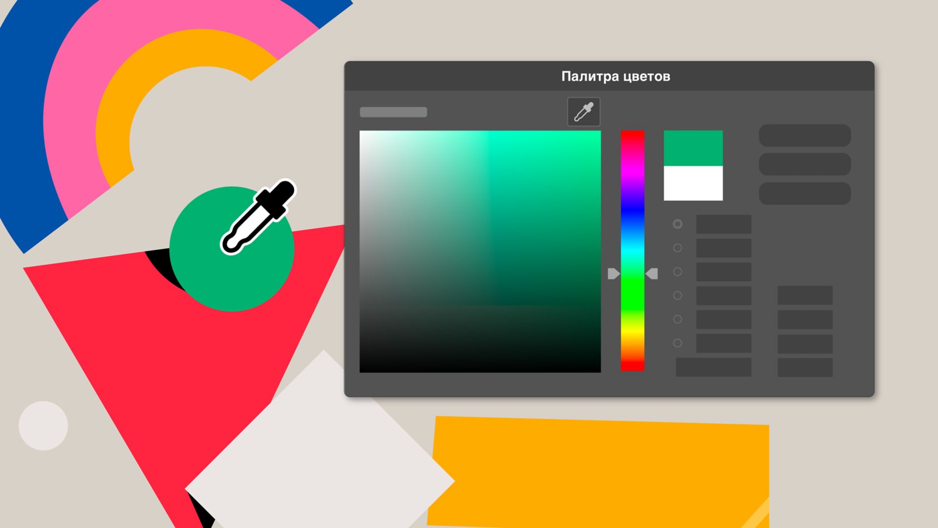 Доступ к инструменту «Пипетка» с «Палитры цветов»