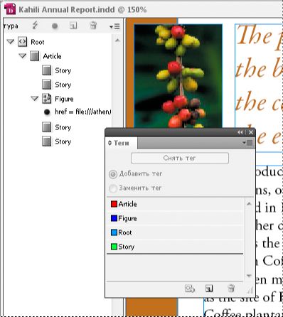 Теги в палитре «Структура» и в палитре «Теги» Теги в палитре «Структура» и в палитре «Теги»
