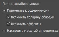 Эта функция аналогична эффектам обводки. Поэтому при масштабировании эффектов применяется та же процедура, что и при масштабировании обводки.