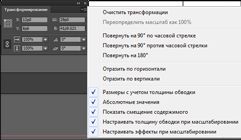 Палитра «Трансформирование» предназначена для просмотра и задания геометрических данных для любого выделенного объекта, включая его положение, размер, поворот и наклон. Команды в меню палитры «Трансформирование» предоставляют дополнительные параметры и способы быстрого поворота и зеркального отражения объектов.