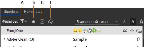 A. Недавно использованные шрифты B. Добавление шрифтов в избранное