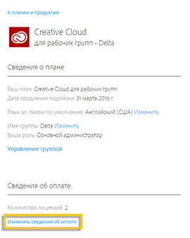 Сведения об оплате и активных подписках можно проверить в разделе Планы и оплата вашей учетной записи Adobe ID в интерактивном режиме. Узнайте, как изменить данные своей кредитной карты и данные для выставления счетов.