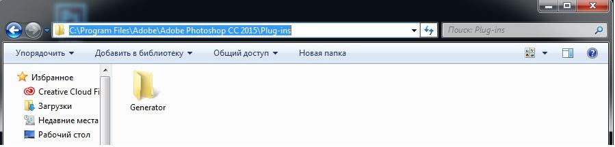 - Общая папка Creative Cloud. Внешний модуль будет загружен для всех установленных версий Photoshop. Переустанавливать модуль не требуется.