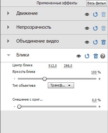 Эффект «Блики» выбран Эффект «Блики» выбран -
