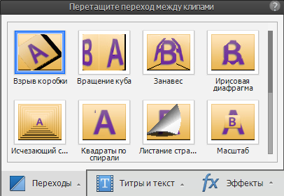 Щелкните миниатюру для любого видеоперехода, чтобы привести его в движение.