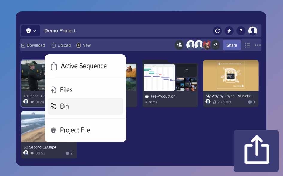 Работайте над одним общим проектом со своими товарищами по команде. Добавьте тех, кого вы хотите, и сотрудничайте непосредственно на временной шкале. Обновления сохраняются в облаке и передаются команде, чтобы вы могли работать над ними вместе.