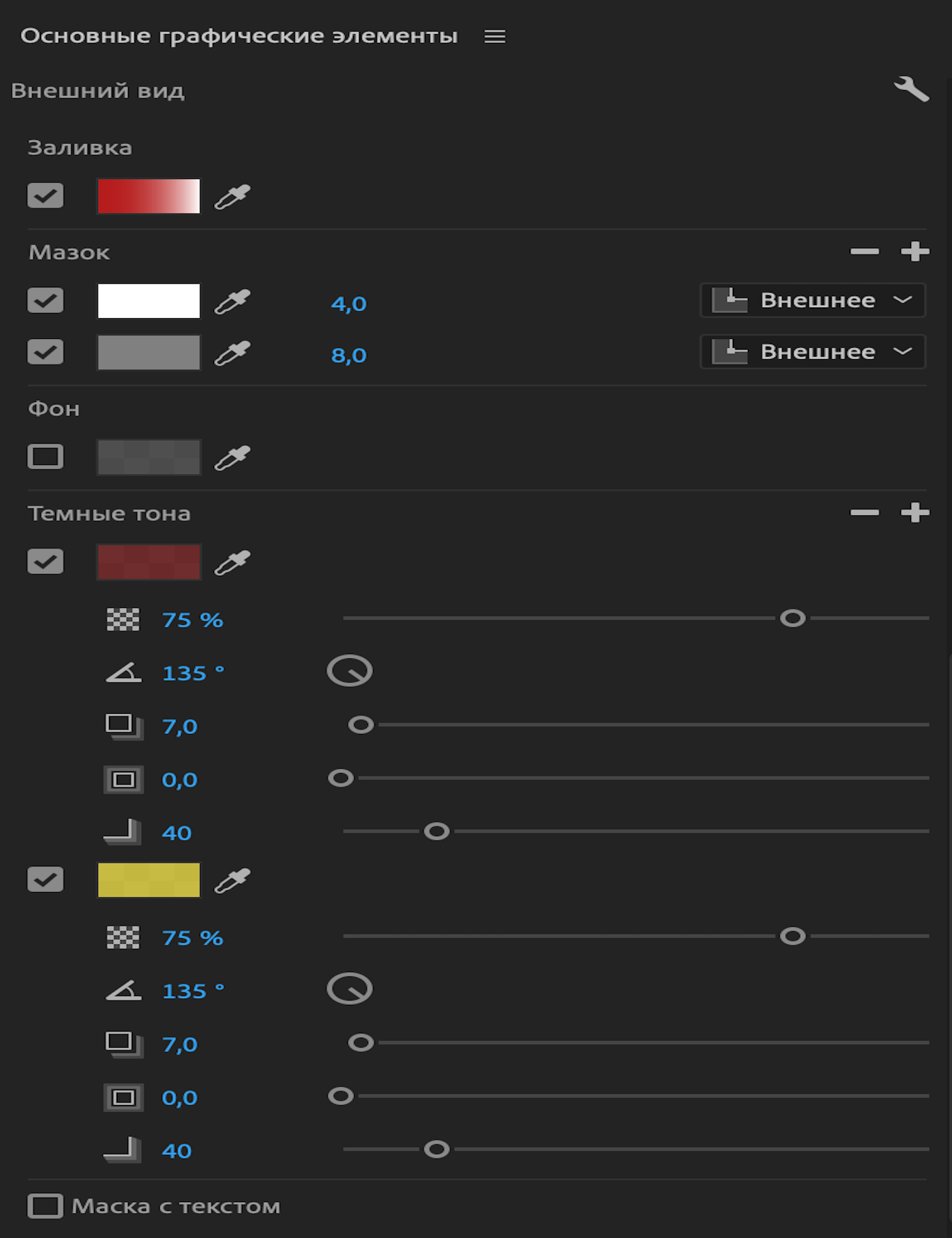 Установите флажок Маскировать фигурой или Маскировать текстом в разделе Внешний вид панели «Основные графические элементы».