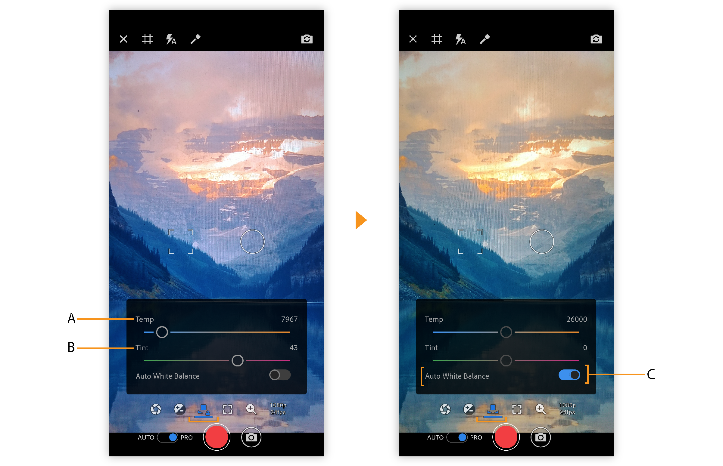Если вы не хотите вручную регулировать профессиональные параметры баланса белого, передвиньте ползунок Автобаланс белого вправо.