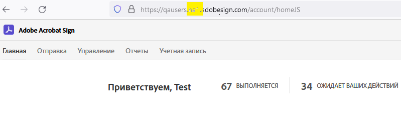 Чтобы узнать, к какой среде относится ваша учетная запись, войдите в Acrobat Sign и проверьте URL-адрес.