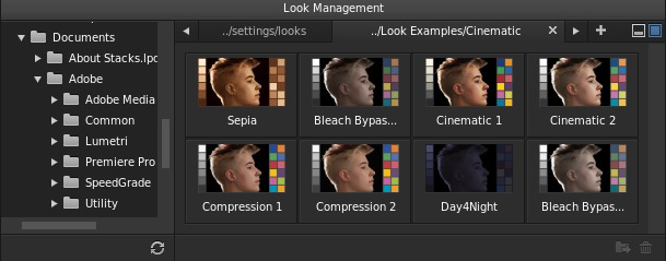 Отображает шаблоны настроек Look в виде миниатюр в нескольких строках. Можно просматривать несколько файлов LOOK одновременно. Также предоставляется древовидная структура навигации, позволяющая задать папку Look по умолчанию.