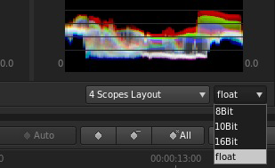 Можно задать значения точности цвета 8-бит, 10-бит, 16-бит или специальное значение разрядности цвета (с плавающей запятой).
