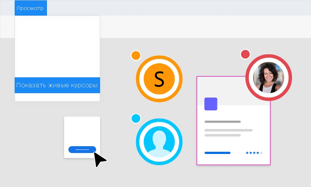 Живые курсоры в виде цветных аватаров других дизайнеров позволяют вам отслеживать правки, которые эти дизайнеры вносят в общедоступные документы.