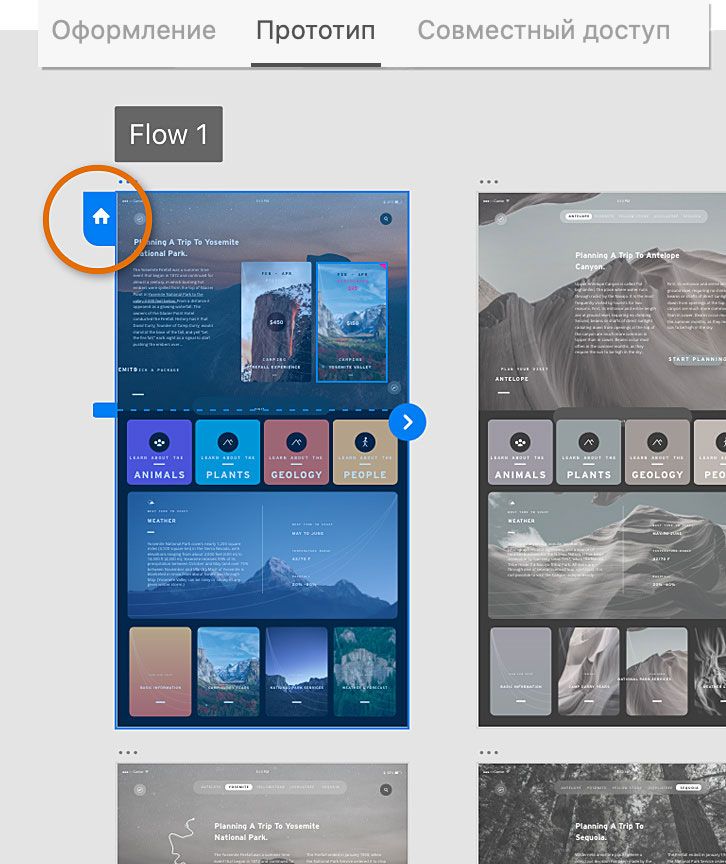 После окончания оформления своих экранов вы можете визуализировать ваше приложение или веб-сайт для пользователей, создав интерактивный прототип.