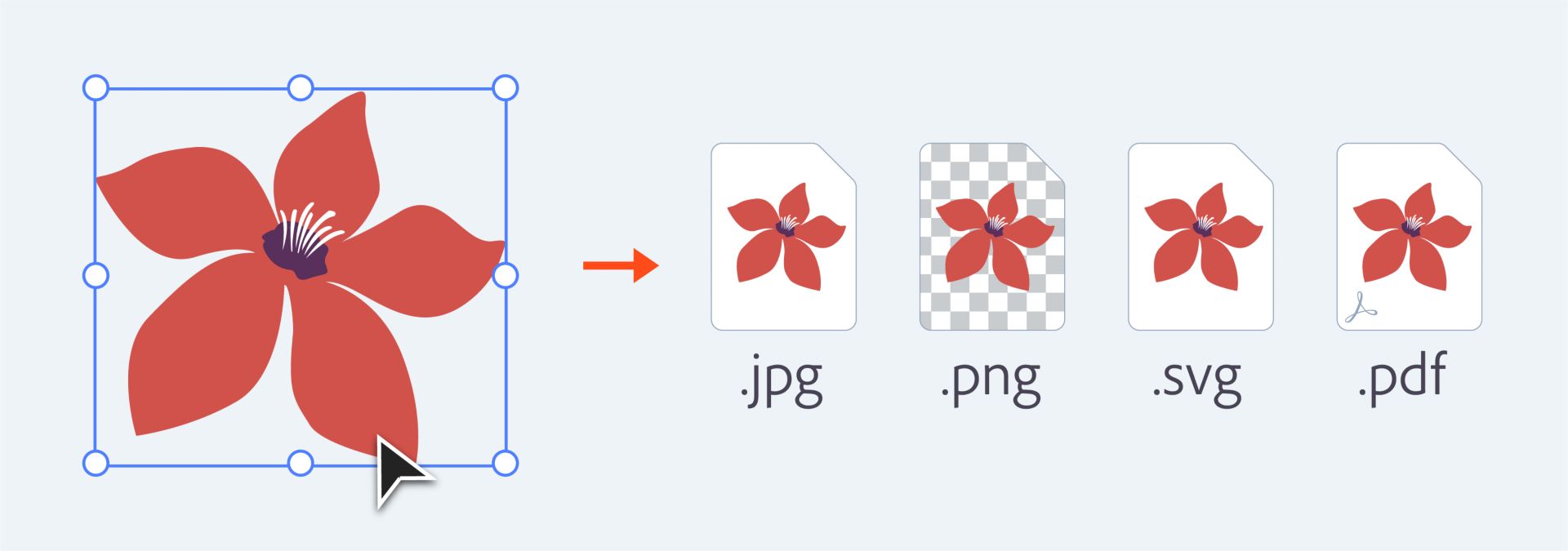 Как правило, самыми распространенными ресурсами являются растровые изображения, значки и фоновые рисунки, которые вы можете экспортировать в следующих форматах: PNG, SVG, PDF и JPG.