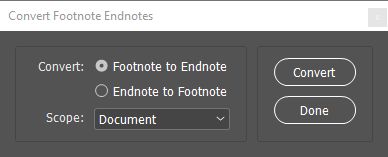 - اختر Endnote to Footnote لتحويل التعليقات الختامية إلى حواشي سفلية.