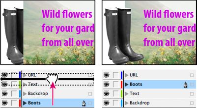 سحب كائنات من طبقة إلى أخرىلتحديد كل الكائنات في طبقة معينة، ابق مفتاح Alt (في Windows) أو مفتاح الخيار (في Mac OS) مضغوطًا وأنت تنقر الطبقة في لوحة الطبقات.