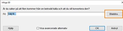I dialogrutan Infoga 3D använder du kommandot Bläddra för att välja 3D-filen.