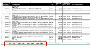 Före (1 tabell sprids över 8 PDF-sidor och varje PDF-sida konverteras som ett separat kalkylblad)