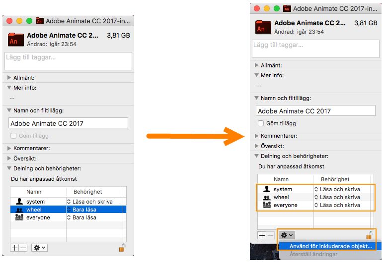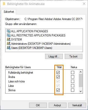 Högerklicka på Adobe Animate 2017 och välj Egenskaper på följande sökväg: