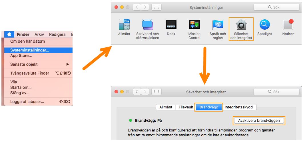 För att stänga av brandväggen ska du utföra följande åtgärder: