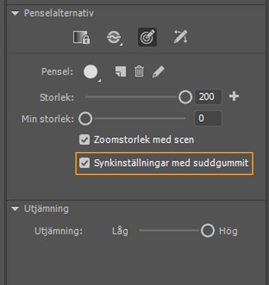 - Aktivera synkroniseringsinställningarna med kryssrutan Suddgummi i Penseln (B).