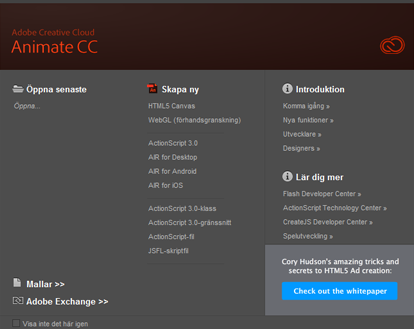 - Kontrollera att du har Animate CC 2014.1 eller senare installerat.