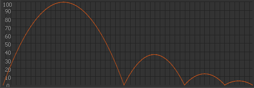 Eftersom övergångskurvorna i rörelseredigeraren kan vara komplexa kan du använda dem för att skapa komplexa rörelser på scenen, utan att du behöver skapa komplexa rörelsebanor på scenen. Du kan också använda övergångskurvor för att skapa komplexa interpoleringar för andra egenskaper, utöver de spatiala egenskaperna som Plats X och Y.