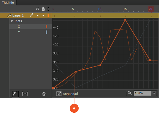 Med ankarpunkter får du större kontroll över egenskapskurvor, eftersom du kan ändra viktiga delar av en kurva separat. Du kan styra formen på de flesta kurvor exakt i rörelseredigeraren genom att lägga till nyckelbildrutor eller ankarpunkter för egenskaper.