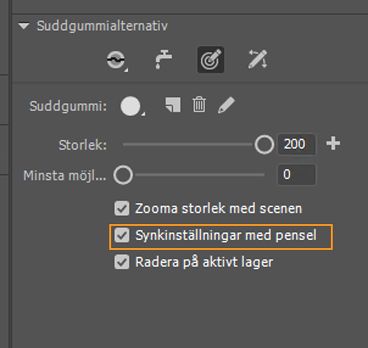 - Markera kryssrutan Synkroniseringsinställningar med pensel i suddgummit (E).