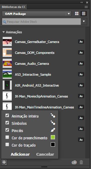 Markera kryssrutan för hela animeringen i popup-fönstret och klicka på Lägg till. De valda animeringsinstanserna överförs till CC Libraries och taggas som An.