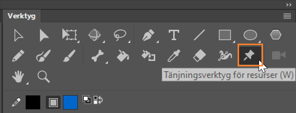 Ett nytt resursförvrängningsverktyg har lagts till i Animate 19.0. Du kan använda resursförvrängningsverktyget när du vill skapa tänjningshandtag på former, ritobjekt och bitmappar i Animate. Genom att dra i tänjningshandtagen med resursförvrängningsverktyget kan du deformera former, ritobjekt och bitmappar.