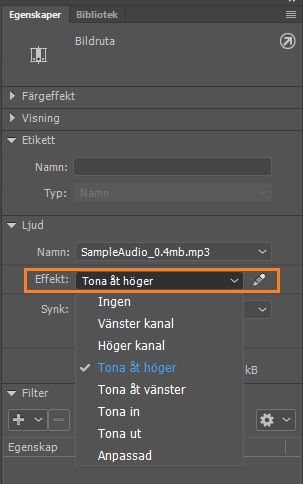 I egenskapsinspektören väljer du ljudfilen från popup-menyn Ljud.