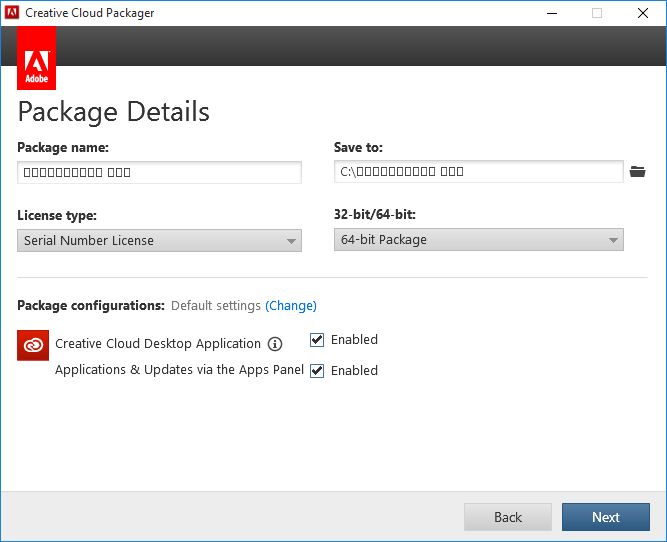 Windows 10: Om du använder japanska 2-bytes tecken eller koreanska tecken för att skapa ett paket i Windows 10 visas språkets tecken som tomma fyrkanter i gränssnittet för Creative Cloud Packager. (Se bilderna nedan.)