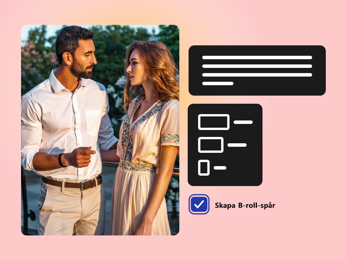 Möjliggör justering av videoinställningar, såsom bildförhållande och videolängd, och du kan till och med lägga till ett B-roll-spår medan du genererar snabbklippningen.