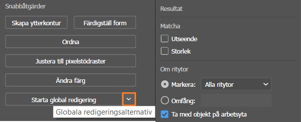 Innan du börjar redigera liknande objekt kan du välja vilka objekt du vill redigera. Gör det genom att välja alternativ för global redigering så att du hittar de objekt som ska redigeras tillsammans.