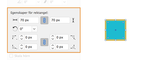 - Bredd/höjd: Anger rektangelns höjd och bredd. Hörnen bibehålls och radierna ändras inte.