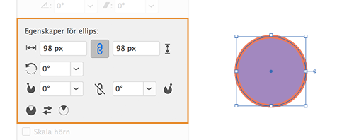 - Bredd/höjd: Anger bredden och höjden på ovalen. När de är lika är ellipsen en cirkel.