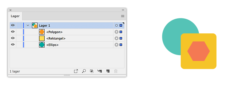 Live-former visas som en annan objekttyp på panelen Lager. Om du till exempel ritar en live-rektangel heter lagret <Rektangel> i panelen Lager. Det här underlättar identifieringen av tillgängliga live-former vid markering och ändring.