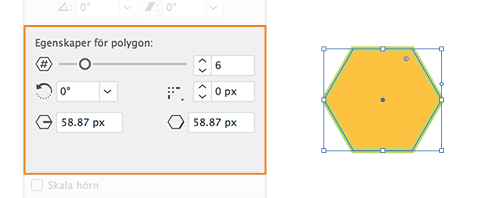 - Polygonens sidantal: Anger antalet sidor polygonen ska ha.